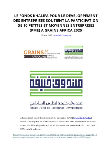 soutient la participation de 10 PME émiraties à Grains Africa 2025, un événement mondial de