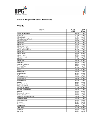 Value of Ad Spend for Arabic Publications
