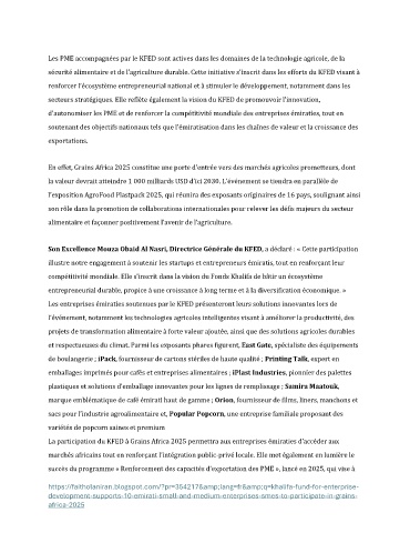 La participation du KFED à Grains Africa 2025 permettra aux entreprises émiraties d’accéder aux