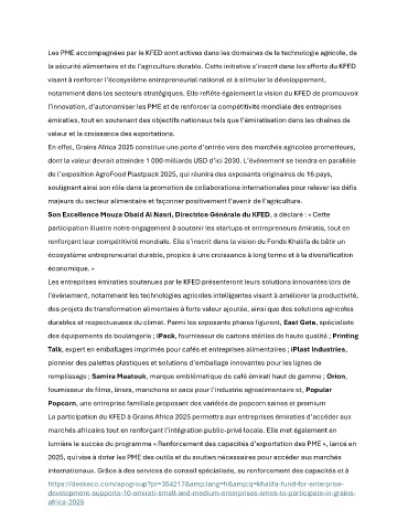 La participation du KFED à Grains Africa 2025 permettra aux entreprises émiraties d’accéder aux