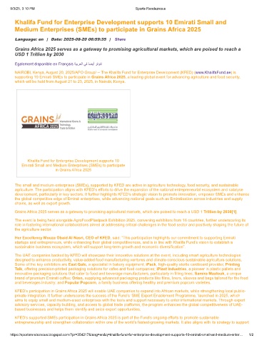 supporting 10 Emirati SMEs to participate in Grains Africa 2025, a leading global event for advancing agriculture and food security,