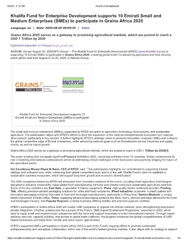 supporting 10 Emirati SMEs to participate in Grains Africa 2025, a leading global event for advancing agriculture and food security,