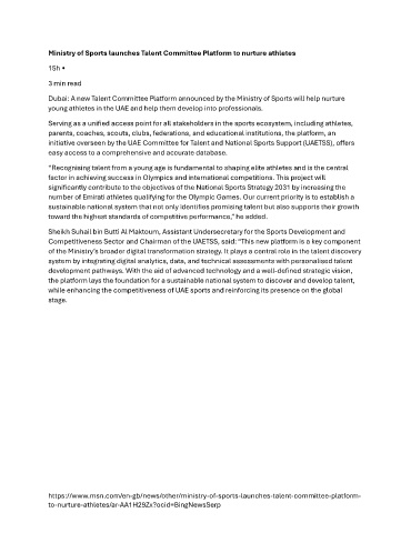 Dubai: A new Talent Committee Platform announced by the Ministry of Sports will help nurture