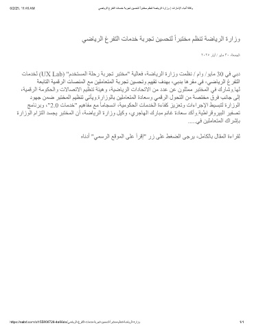 تﺎﻣﺪﺨﻟ (UX Lab) "مﺪﺨﺘﺴﻤﻟا ﺔﻠﺣر ﺔﺑﺮﺠﺗ ﺮﺒﺘﺨﻣ" ﺔﯿﻟﺎﻌﻓ ،ﺔﺿﺎﯾﺮﻟا ةرازو ﺖﻤﻈﻧ / ماو /ﻮﯾﺎﻣ 30 ﻲﻓ ﻲﺑد