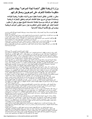 ﻢﻋدو ﺔﯿﺿﺎﻳﺮﻟا ﺐھاﻮﻤﻟا ﺔﻳﺎﻋﺮﻟ تارﺎﻣﻹا ﺔﻨﺠﻟ ﺔﻠﻈﻣ ﺖﺤﺗ "ﺐھاﻮﻤﻟا ﺔﻨﺠﻟ ﺔﺼﻨﻣ" قﻼطإ ﻦﻋ ﺔﺿﺎﻳﺮﻟا ةرازو ﺖﻨﻠﻋأ