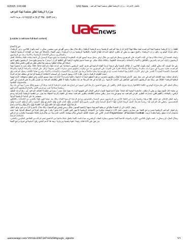 6/20/25, 9:49 AM UAE News - بھاوﻣﻟا ﺔﻧﺟﻟ ﺔﺻﻧﻣ» ﻖﻠطﺗ ﺔﺿﺎﯾرﻟا ةرازو - تارﺎﻣﻹا رﺎﺑﺧأ»