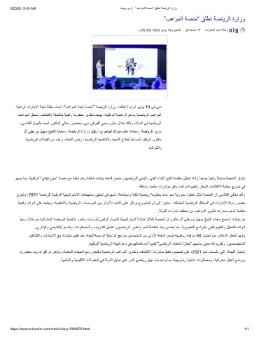 زﯾزﻌﺗو ،2031 ﺔﺿﺎﯾرﻠﻟ ﺔﯾﻧطوﻟا ﺔﯾﺟﯾﺗارﺗﺳﻻا تﺎﻓدﮭﺗﺳﻣ ﻖﯾﻘﺣﺗ ﻲﻓ مﮭﺳﺗ ،ﺔﻣادﺗﺳﻣو ﺔﯾﻛذ ﺔﯾﺿﺎﯾر ﺔﻣوظﻧﻣ ءﺎﻧﺑ وﺣﻧ ﺔﯾروﺣﻣ ةوطﺧ لﺛﻣﺗ ﺔﺻﻧﻣﻟا نأ ﻲﺳﻼﻔﻟا ﻲﻟﺎﻌﻣ دﻛأو