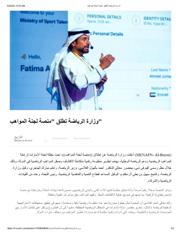 ﺔﯾﺎﻋﺮﻟ تارﺎﻣﻹا ﺔﻨﺠﻟ ﺔﻠﻈﻣ ﺖﺤﺗ ،((ﺐھاﻮﻤﻟا ﺔﻨﺠﻟ ﺔﺼﻨﻣ)) قﻼطإ ﻦﻋ ﺔﺿﺎﯾﺮﻟا ةرازو ﺖﻨﻠﻋأ (MENAFN- Al-Bayan)