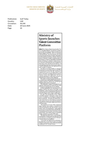 Publication: Gulf Today Country: UAE Circulation: 49,500 Date: 20 June 2025 Page: 20