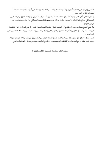 ﻦﻣ زﺰﻌﺗ ﺔﻴﺿﺎﻳر ﺔﺌﻴﺑ ءﺎﻨﺑ ﻓ ًﺎﻤﻬﻣ ًارﻮﺤﻣ ﻞﺸﻳ ﻢﻬﻤﻋد نأ ًاﺪﻛﺆﻣ ،ةﺪﺋاﺮﻟا ﺔﻴﻨﻃﻮﻟا ةردﺎﺒﻤﻟا هﺬﻫ حﺎﺠﻧإ ﻓ اﻮﻤﻬﺳأ