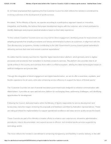 6/26/25, 9:10 AM Ministry of Sports holds its first of the ‘Customer Councils’ of 2025 to enhance sports services - Aletihad News Center