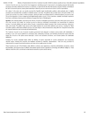 6/26/25, 9:16 AM Ministry of Sports holds its first of the ‘Customer Councils' of 2025 to enhance sports services in line with customers' expectations