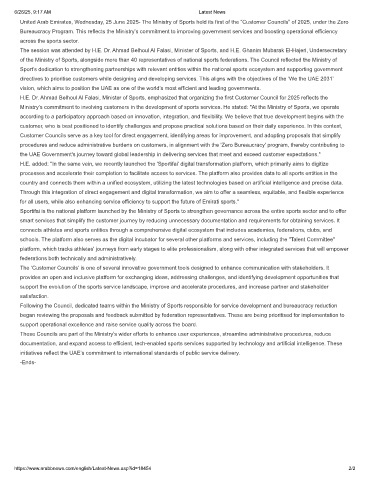 United Arab Emirates, Wednesday, 25 June 2025- The Ministry of Sports held its first of the “Customer Councils” of 2025, under the Zero