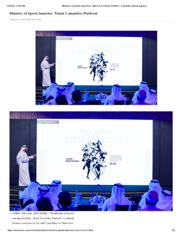 6/20/25, 8:48 AM Ministry of Sports launches ‘Talent Committee Platform’ | Emirates News Agency
