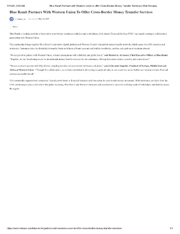 5/15/25, 9:49 AM Blue Remit Partners with Western Union to offer Cross-Border Money Transfer Services | Web Release
