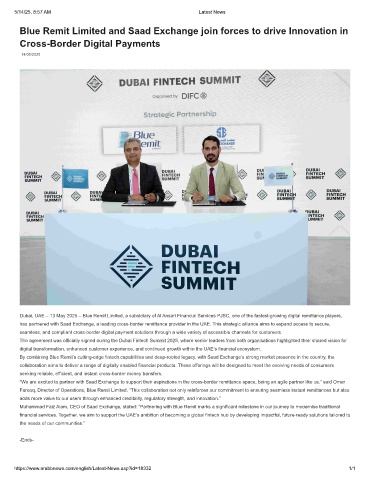 has partnered with Saad Exchange, a leading cross-border remittance provider in the UAE. This strategic alliance aims to expand access to secure,