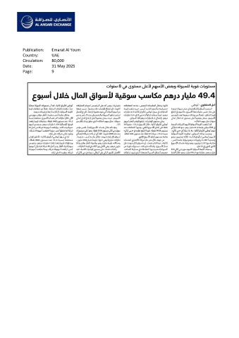 Publication: Emarat Al Youm Country: UAE Circulation: 80,000 Date: 31 May 2025 Page: 9