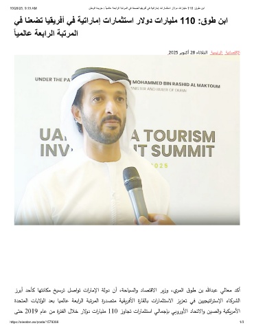 10/28/25, 9:15 AM نطوﻟا ةدﯾرﺟ › ً ﺎﯾﻣﻟﺎﻋ ﺔﻌﺑارﻟا ﺔﺑﺗرﻣﻟا ﻲﻓ ﺎﻧﻌﺿﺗ ﺎﯾﻘﯾرﻓأ ﻲﻓ ﺔﯾﺗارﺎﻣإ تارﺎﻣﺛﺗﺳا رﻻود تارﺎﯾﻠﻣ 110 :قوط نﺑا