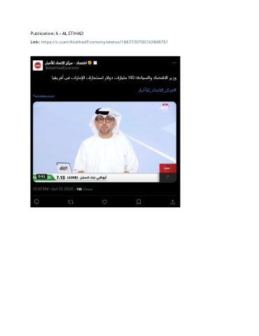Publication: X – AL ETIHAD Link: https://x.com/AletihadEconomy/status/1982720705742446751