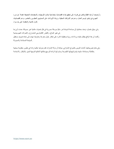 ةيحايس ةموظنم ريوطت يف ادئار ايملاع اجذومن مدقت تاراملإا ةلود نأ ةدكؤم ،يتاراملإا جذومنلاب سيونلا تداشأ ،اهتاحيرصت ماتخ يفو