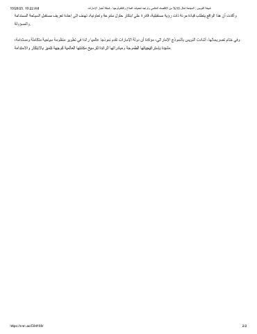 ،ﺔﻣاﺪﺘﺴﻣو ﺔﻠﻣﺎﻜﺘﻣ ﺔﯿﺣﺎﯿﺳ ﺔﻣﻮﻈﻨﻣ ﺮﯾﻮﻄﺗ ﻲﻓ اﺪﺋار ﺎﯿﻤﻟﺎﻋ ﺎﺟذﻮﻤﻧ مﺪﻘﺗ تارﺎﻣﻹا ﺔﻟود نأ ةﺪﻛﺆﻣ ،ﻲﺗارﺎﻣﻹا جذﻮﻤﻨﻟﺎﺑ ﺲﯾﻮﻨﻟا تدﺎﺷأ ،ﺎﮭﺗﺎﺤﯾﺮﺼﺗ مﺎﺘﺧ ﻲﻓو
