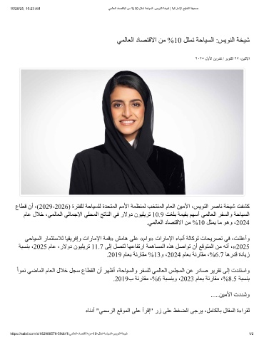 10/28/25, 10:23 AM ﻲﻣﻟﺎﻌﻟا دﺎﺻﺗﻗﻻا نﻣ %10 لﺛﻣﺗ ﺔﺣﺎﯾﺳﻟا :سﯾوﻧﻟا ﺔﺧﯾﺷ | ﺔﯾﺗارﺎﻣﻹا ﺞﯾﻠﺧﻟا ﺔﻔﯾﺣﺻ