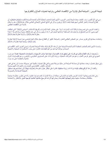 10/28/25, 10:23 AM ﺎﯾﺟوﻟوﻧﻛﺗﻟاو خﺎﻧﻣﻟا تﺎﯾدﺣﺗ ﮫﺟاوﺗو ﻲﻣﻟﺎﻌﻟا دﺎﺻﺗﻗﻻا نﻣ %10 لﺛﻣﺗ ﺔﺣﺎﯾﺳﻟا : سﯾوﻧﻟا ﺔﺧﯾﺷ - Fana News