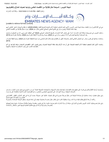 10/28/25, 10:23 AM UAE News - ﺎﯾﺟوﻟوﻧﻛﺗﻟاو خﺎﻧﻣﻟا تﺎﯾدﺣﺗ ﮫﺟاوﺗو ﻲﻣﻟﺎﻌﻟا دﺎﺻﺗﻗﻻا نﻣ %10 لﺛﻣﺗ ﺔﺣﺎﯾﺳﻟا : سﯾوﻧﻟا ﺔﺧﯾﺷ - تارﺎﻣﻹا رﺎﺑﺧأ