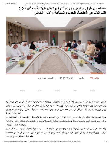 10/28/25, 8:55 AM ﻲﺋاذﻐﻟا نﻣﻷاو ﺔﺣﺎﯾﺳﻟاو دﯾدﺟﻟا دﺎﺻﺗﻗﻻا ﻲﻓ تﺎﻛارﺷﻟا زﯾزﻌﺗ نﺎﺛﺣﺑﯾ ﺔﯾدﻧﮭﻟا شﯾدارﺑ اردﻧأ ءارزو سﯾﺋرو قوط نﺑ ﷲدﺑﻋ | ﮫﯾﺗارﺎﻣﻹا رﺟﻔﻟا ةدﯾرﺟ | ﮫﯾﺗارﺎﻣﻹا رﺟﻔﻟا ةدﯾرﺟ