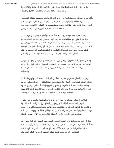 10/28/25, 8:57 AM ﻲﺋاذﻐﻟا نﻣﻷاو ﺔﺣﺎﯾﺳﻟاو دﯾدﺟﻟا دﺎﺻﺗﻗﻻا ﻲﻓ تﺎﻛارﺷﻟا زﯾزﻌﺗ نﺎﺛﺣﺑﯾ ﺔﯾدﻧﮭﻟا "شﯾدارﺑ اردﻧأ" ءارزو سﯾﺋرو قوط نﺑ ﷲدﺑﻋ - Nas News UAE