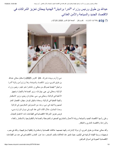 10/28/25, 9:00 AM تﻧﯾوﺑ ودرأ - ﻲﺋاذﻐﻟا نﻣﻷاو ﺔﺣﺎﯾﺳﻟاو دﯾدﺟﻟا دﺎﺻﺗﻗﻻا ﻲﻓ تﺎﻛارﺷﻟا زﯾزﻌﺗ نﺎﺛﺣﺑﯾ ﺔﯾدﻧﮭﻟا شﯾدارﺑ اردﻧأ ءارزو سﯾﺋرو قوط نﺑ ﷲدﺑﻋ