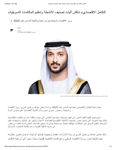 دﺎﺻﺗﻗﻻا رﯾزو ،يرﻣﻟا قوط نﺑ ﷲدﺑﻋ ﻲﻟﺎﻌﻣ ﺔﺳﺎﺋرﺑ ،2025 مﺎﻌﻟ سدﺎﺳﻟا ﺎﮭﻋﺎﻣﺗﺟا يدﺎﺻﺗﻗﻻا لﻣﺎﻛﺗﻟا ﺔﻧﺟﻟ تدﻘﻋ