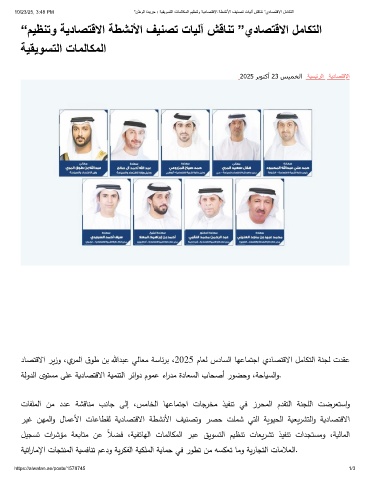 10/23/25, 3:48 PM “نطوﻟا ةدﯾرﺟ › ﺔﯾﻘﯾوﺳﺗﻟا تﺎﻣﻟﺎﻛﻣﻟا مﯾظﻧﺗو ﺔﯾدﺎﺻﺗﻗﻻا ﺔطﺷﻧﻷا فﯾﻧﺻﺗ تﺎﯾﻟآ شﻗﺎﻧﺗ ”يدﺎﺻﺗﻗﻻا لﻣﺎﻛﺗﻟا
