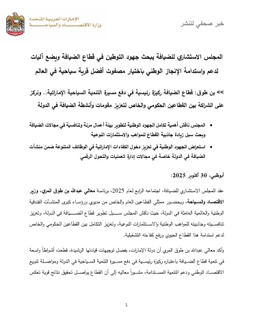 ر�زو ،ي رمﻟا قوط نﺒ ﷲدبﻋ ﻲﻟﺎﻌﻤ ﺔــﺴﺎﺌرﺒ ، 2025 مﺎﻌﻟ ﻊﺒارﻟا ﻪﻋﺎﻤﺘﺠا ،ﺔﻓﺎﯿــﻀﻠﻟ يرﺎــﺸﺘــﺴﻻا سﻠﺠﻤﻟا دﻘﻋ