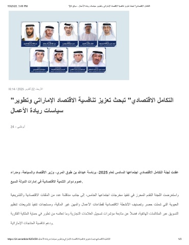 10/23/25, 3:49 PM "24 ﻊﻗوﻣ - لﺎﻣﻋﻷا ةدﺎﯾر تﺎﺳﺎﯾﺳ رﯾوطﺗو ﻲﺗارﺎﻣﻹا دﺎﺻﺗﻗﻻا ﺔﯾﺳﻓﺎﻧﺗ زﯾزﻌﺗ ثﺣﺑﺗ "يدﺎﺻﺗﻗﻻا لﻣﺎﻛﺗﻟا
