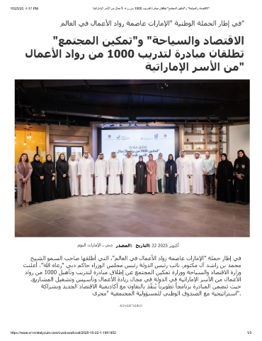 10/23/25, 4:17 PM ﺔﯾﺗارﺎﻣﻹا رﺳﻷا نﻣ لﺎﻣﻋﻷا داور نﻣ 1000 بﯾردﺗﻟ ةردﺎﺑﻣ نﺎﻘﻠطﺗ "ﻊﻣﺗﺟﻣﻟا نﯾﻛﻣﺗ"و "ﺔﺣﺎﯾﺳﻟاو دﺎﺻﺗﻗﻻا"