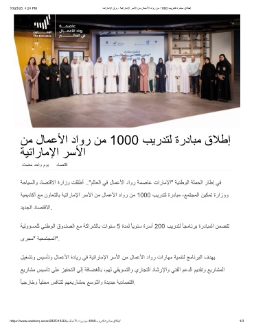 ﺔﯾﻣﯾدﺎﻛأ ﻊﻣ نوﺎﻌﺗﻟﺎﺑ ﺔﯾﺗارﺎﻣﻹا رﺳﻷا نﻣ لﺎﻣﻋﻷا داور نﻣ 1000 بﯾردﺗﻟ ةردﺎﺑﻣ ،ﻊﻣﺗﺟﻣﻟا نﯾﻛﻣﺗ ةرازوو