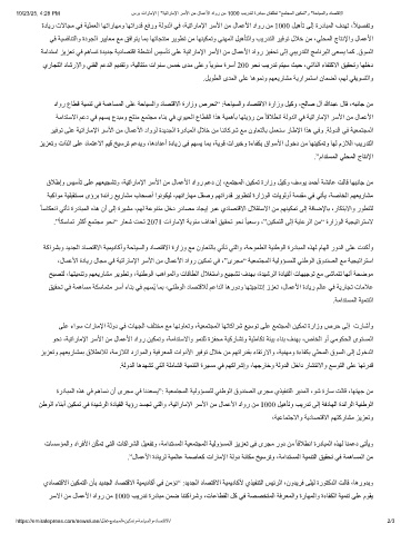 .”لﺎﻤﻋﻷا ةدﺎﯾﺮﻟ ﺔﯿﻤﻟﺎﻋ ﺔﻤﺻﺎﻌﻛ تارﺎﻣﻹا ﺔﻟود ﺔﻧﺎﻜﻣ ﺦﯿﺳﺮﺗو ،ﺔﻣاﺪﺘﺴﻤﻟا ﺔﯿﻤﻨﺘﻟا ﻖﯿﻘﺤﺗ ﻲﻓ ﺔﻤھﺎﺴﻤﻟا ﻦﻣ