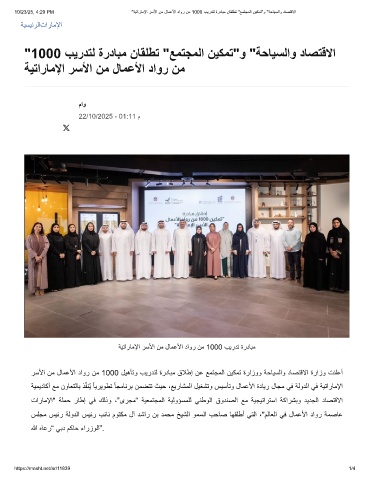 10/23/25, 4:29 PM "ﺔﯾﺗارﺎﻣﻹا رﺳﻷا نﻣ لﺎﻣﻋﻷا داور نﻣ 1000 بﯾردﺗﻟ ةردﺎﺑﻣ نﺎﻘﻠطﺗ "ﻊﻣﺗﺟﻣﻟا نﯾﻛﻣﺗ"و "ﺔﺣﺎﯾﺳﻟاو دﺎﺻﺗﻗﻻا