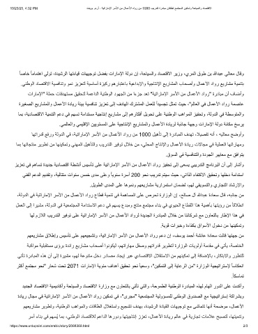 مﮭﻌﯾرﺎﺷﻣ قﻼطإو سﯾﺳﺄﺗ ﻰﻠﻋ مﮭﻌﯾﺟﺷﺗو ،ﺔﯾﺗارﺎﻣﻹا رﺳﻷا نﻣ لﺎﻣﻋﻷا داور مﻋد نإ ،فﺳوﯾ دﻣﺣأ ﺔﺷﺋﺎﻋ ةدﺎﻌﺳ تﻟﺎﻗ ﺎﮭﺗﮭﺟ نﻣ