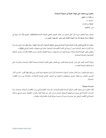 ةيؤر م عد يف ةزراب ةوطخ لثميو ،ةيئيبلاو ةينارمعلاو ةيحايسلا اهتايلمع عيمج يف ةمادتسلاا جمدب ةنيدملا مازتلا يملاعلا جيوتتلا اذه سكعيو