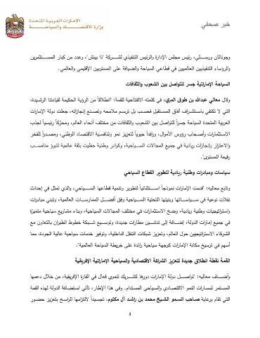 ." ﺔﯿﻤﻟﺎﻌﻟا ﺔﺤﺎﯿﺴﻟا ﺔطﯿرﺨ ﻰﻠﻋ ةدﺌار ﺔﯿﺤﺎﯿﺴ ﺔﻬﺠوﻛ تارﺎﻤﻹا ﺔﻨﺎﻛﻤ ﺦﯿﺴرﺘ ﻲﻓ مﻬﺴأ
