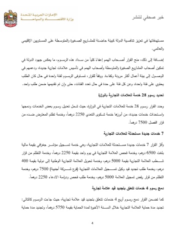 ﺎﻬﺠﻤدو تﺎﻤدﺨﻟا ضﻌﺒ موـــﺴر لﯿدﻌﺘ لﻤـــﺸ ثﯿﺤ ،ةرازوﻟا ﻲﻓ ﺔﯿرﺎﺠﺘﻟا تﺎﻤﻼﻌﻠﻟ ﺔﻤدﺨ 28 موـــﺴر رارﻘﻟا ددﺤو