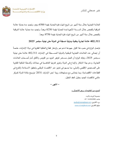 ﺔـﯿﺎـﻬﻨ ﻰ ﺘﺤ ﺔـﻤﻼﻋ 402,311 تارﺎـﻤﻹا ﻲﻓ ﺔـﻠﺠــــــــــــــﺴﻤﻟا ﺔـﯿﻟودـﻟاو ﺔـﯿﻨطوﻟا ﺔـﯿرﺎـﺠﺘﻟا تﺎـﻤﻼﻌﻟا ددـﻋ ﻲﻟﺎـﻤﺠإ نأ
