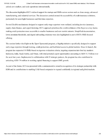 10/10/25, 8:58 AM Etihad Credit Insurance showcases innovative credit solutions for UAE-based SMEs and startups | Web Release