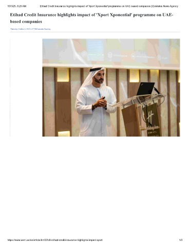 10/3/25, 8:29 AM Etihad Credit Insurance highlights impact of 'Xport Xponential' programme on UAE-based companies | Emirates News Agency