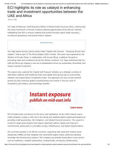 10/3/25, 8:39 AM ECI highlights its role as catalyst in enhancing trade and investment opportunities between the UAE and Africa - Middle East Busine…