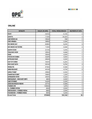 WEBSITE VALUE (IN AED) TOTAL MEDIA REACH NUMBER OF HITS