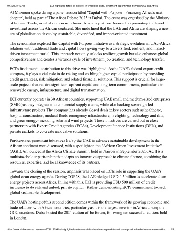 10/3/25, 8:40 AM ECI highlights its role as catalyst in enhancing trade, investment opportunities between UAE and Africa