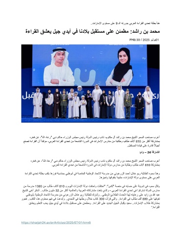 .. تاراملإا ىوتسم ىلع 9 ـلا هترودب يبرعلا ةءارقلا يدحت ةلطب أنه